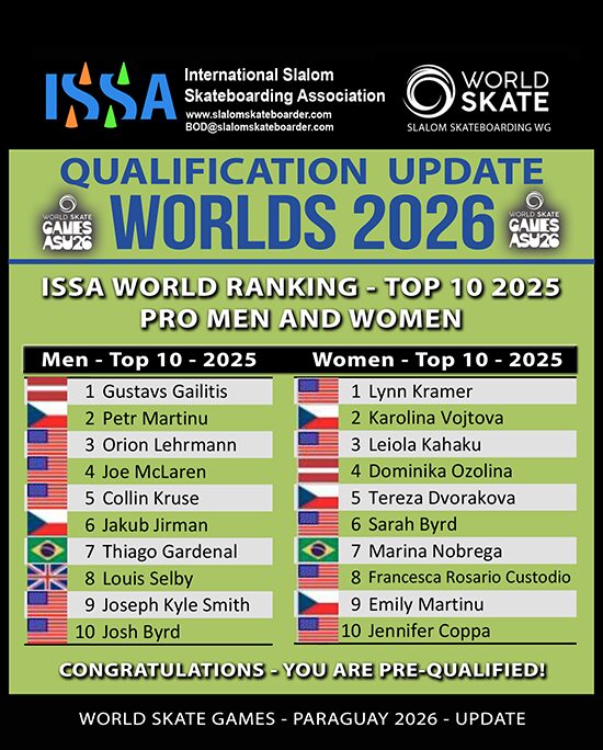 🌎 Special recognition: The Top 10 Pro Men & Top 10 Women are also qualified to compete at the 2026 World Skate Games in Paraguay (October 2026)