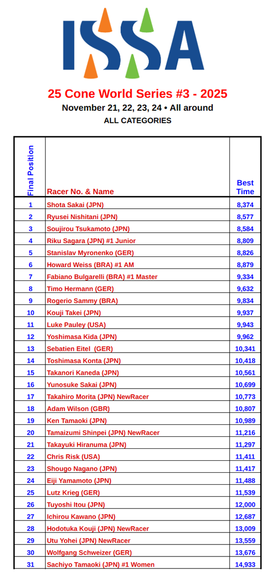 ISSA 25 CONE WORLD SERIES #2 - Results