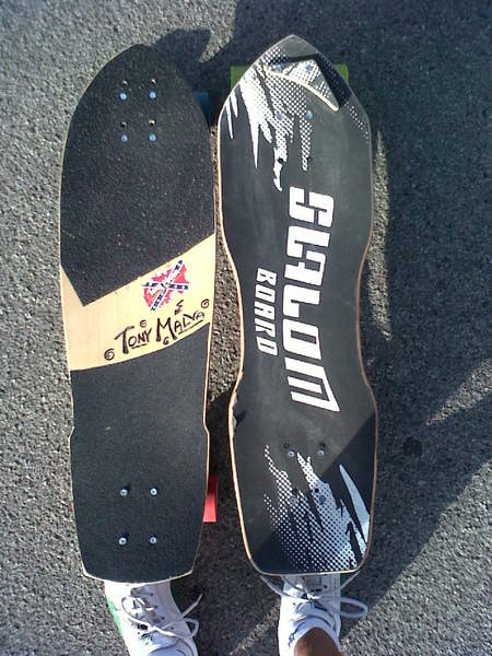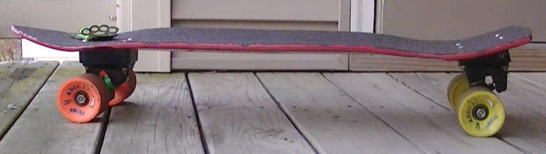 The red Skaterbuilt with the switched Ettsexett hangers (rear in front, and front in rear), talk about a weird way to setup such good trucks!!!
